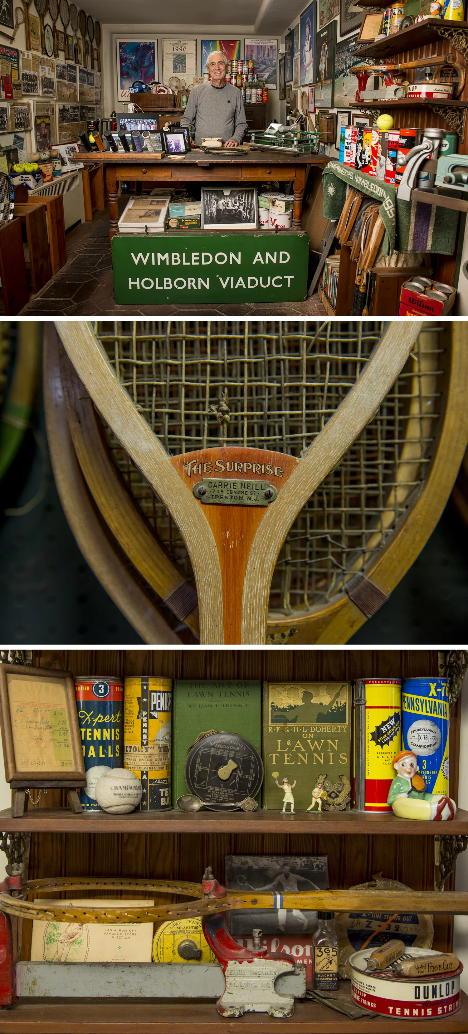 It was by chance last October that I stumbled across The Racket Web, a little treasure trove of tennis past and present nestled inside of Nola's restaurant in Palo Alto. Since 1977 master stringer John Mundorff has been tending to rackets in his same little museum of a racket shop. His shop walls are covered with patinaed tennis history, rackets from the 1800s, Wimbeldon Championship Towels, Tennis Ball sleeves from long before I was born. John and his wife have been collecting tennis memorabilia for quite a while, and he has quite the collection. He also has quite a client following, he was the Stanford Tennis Team Stringer for 30 years running. Generations of tennis players, both amateur and pro have been trusting John with their rackets. The tennis legend Jimmy Connors even stood at The Racket Web's counter, the same spot I stood to ask John if I could come back and take his portrait. With his gentle demeanor John invited me back and with my camera in hand I spent a little over an hour with him. Like old friends we chatted about life, working for ourselves and of course the game of tennis. The game that is a part of John's everyday life and I can tell he loves every minute of it.